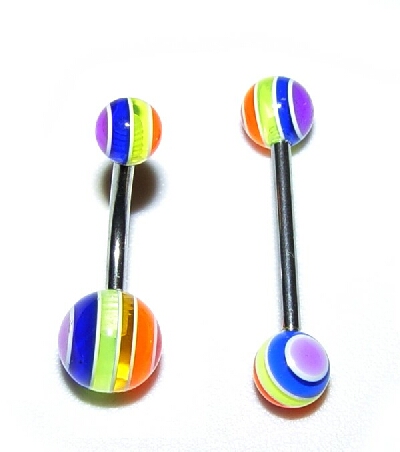 316L Surgical SteelRainbow UV Balls PRODUCT DETAILSStandard 14 GaugeTongue Ring: 5/8" Length Belly Button Ring: 7/16" Length Belly Button Ring - Body Jewelry