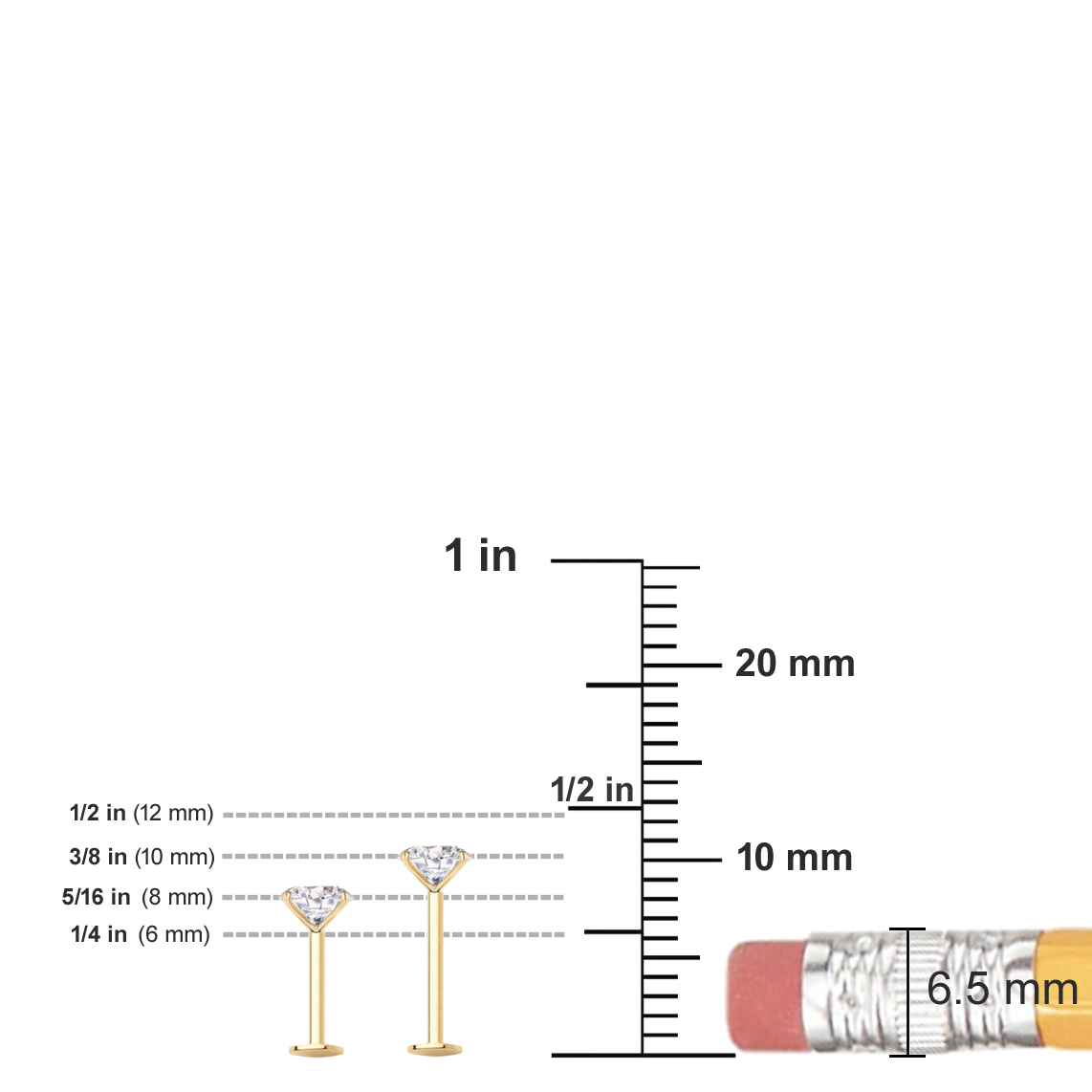 1/4"(6mm): Common Length for Most Healed Ear Cartilage Piercings (Helix, Conch, Tragus, Earlobe)