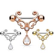 Pair of 316L Dangling CZ Drop Gold Plated Nipple Ring Barbell (Rose Gold)