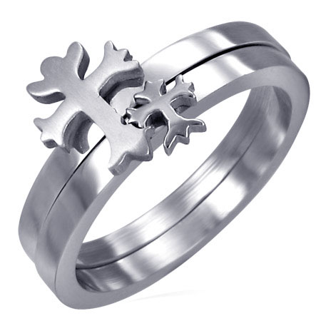316L Stainless Steel 2-Piece Ring - Cross