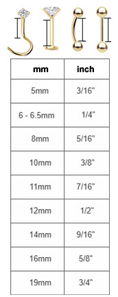 Post Length: Nose(5mm to 7mm), Lip (8mm to 10mm), Cartilage (5mm to 7mm)