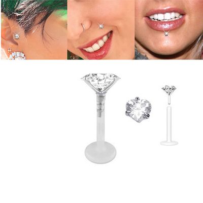 Clear Flexible Bioplast Post with Sparkling 3mm Heart Cubic Zirconia