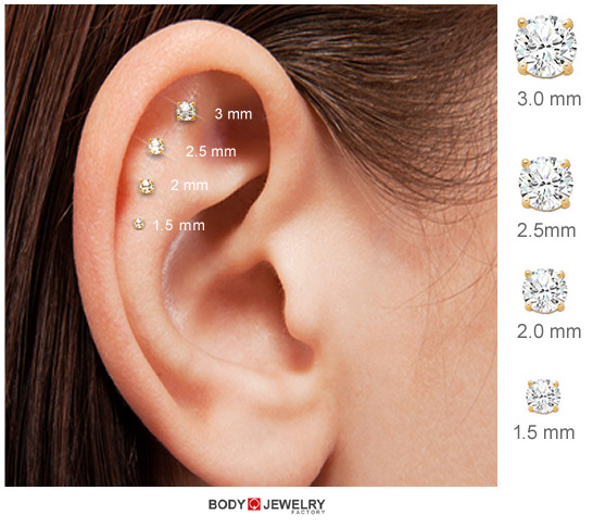 1/4"(6mm): Common Length for Most Healed Ear Cartilage Piercings (Helix, Conch, Tragus, Earlobe)